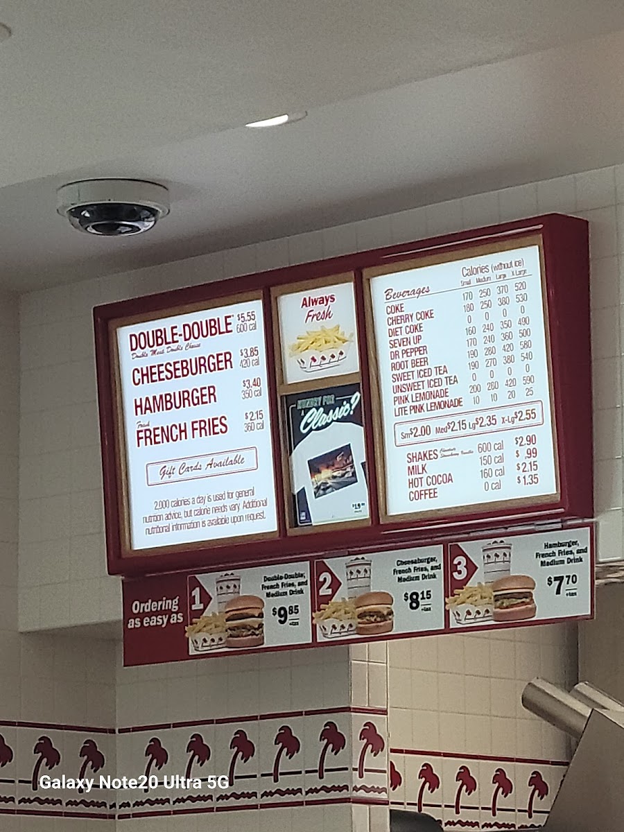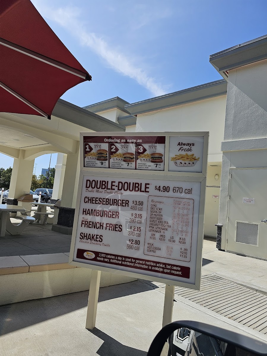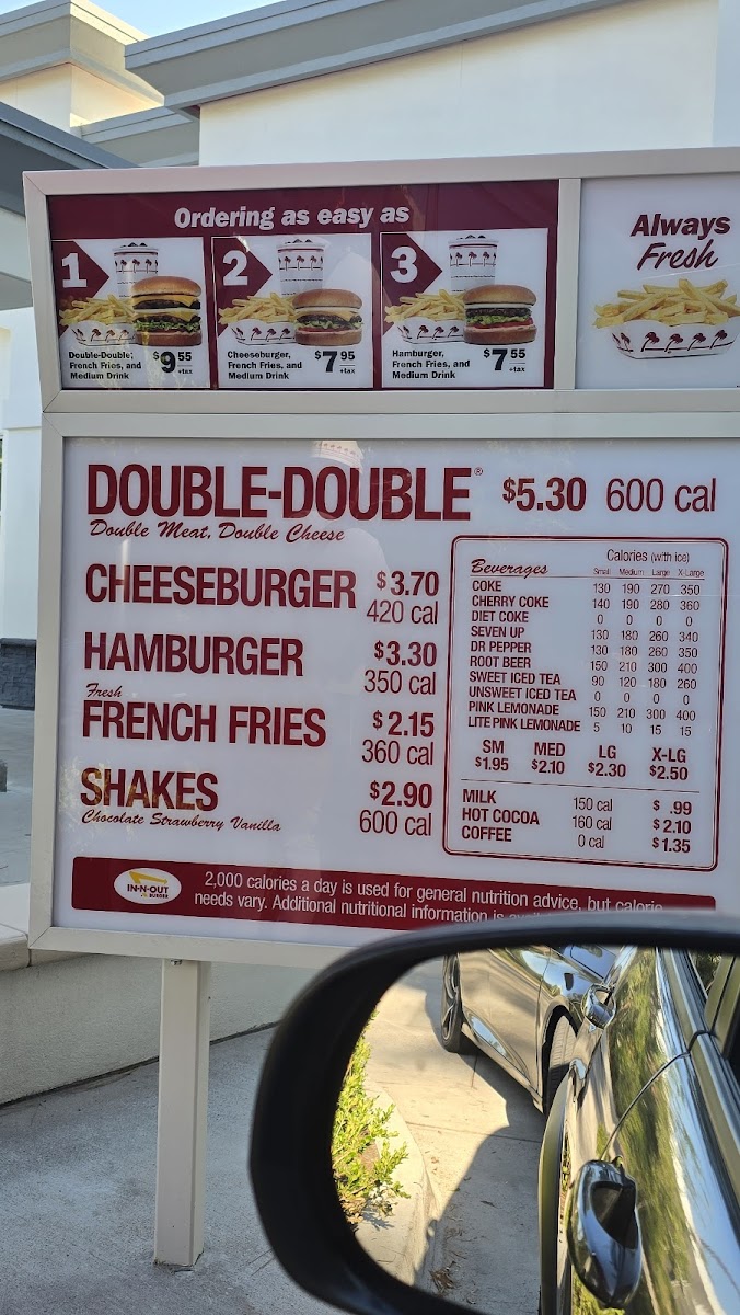 In-N-Out Burger is a celebrated fast-food jewel known for its simplicity and quality. Their menu focuses on a few core items executed to perfection: the iconic Double-Double, Cheeseburger, and Hamburger, each paired delightfully with freshly cut French Fries and a refreshing medium drink. The burgers boast fresh, hand-leafed lettuce, ripe tomatoes, and their signature spread layered on soft, toasted buns. Beyond the classics, the menu offers an array of beverages including Coke varieties, Root Beer, and indulgent shakes that perfectly complement the savory flavors.