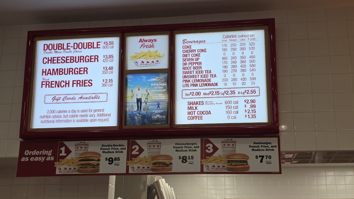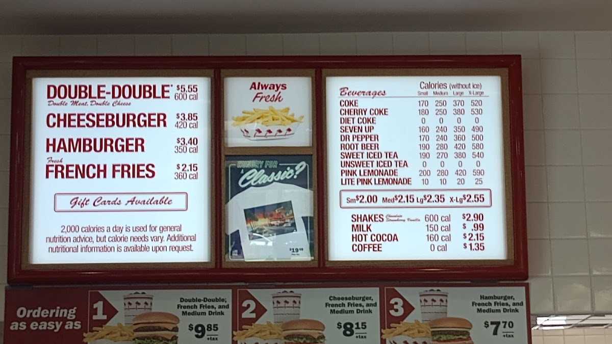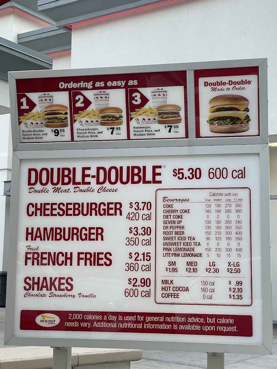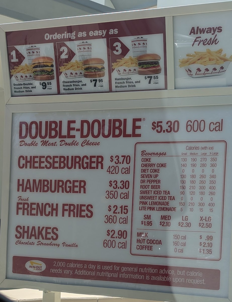 In-N-Out Burger is a celebrated fast-food jewel known for its simplicity and quality. Their menu focuses on a few core items executed to perfection: the iconic Double-Double, Cheeseburger, and Hamburger, each paired delightfully with freshly cut French Fries and a refreshing medium drink. The burgers boast fresh, hand-leafed lettuce, ripe tomatoes, and their signature spread layered on soft, toasted buns. Beyond the classics, the menu offers an array of beverages including Coke varieties, Root Beer, and indulgent shakes that perfectly complement the savory flavors.